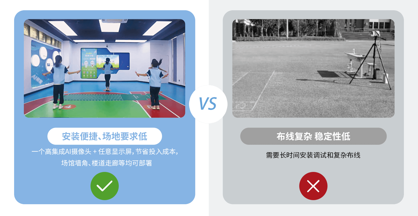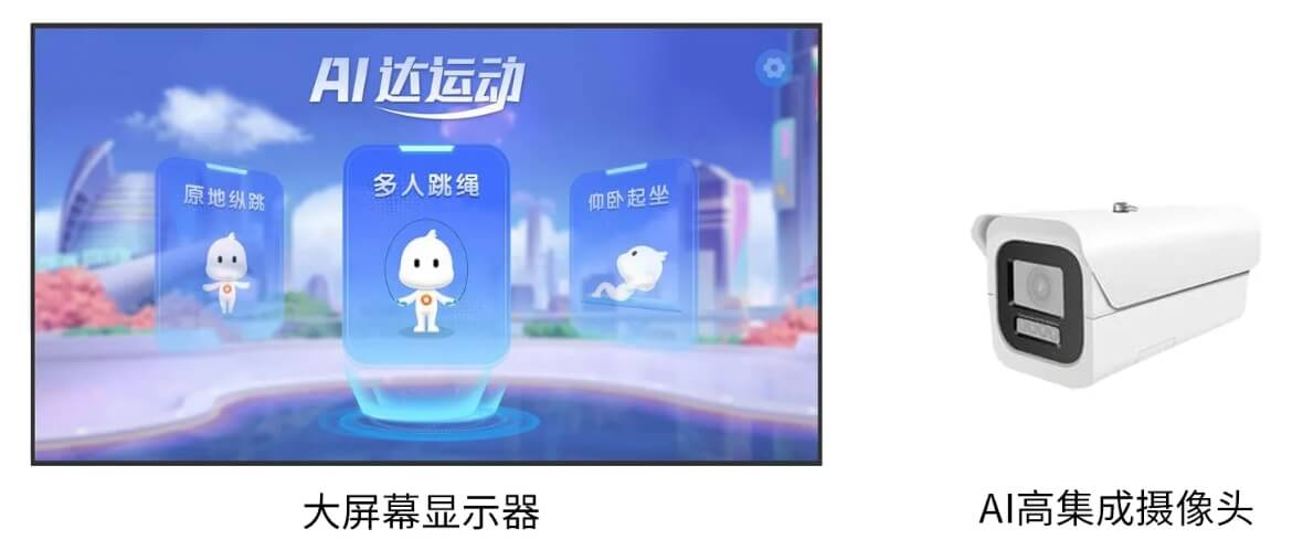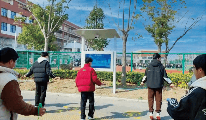 结合高集成摄像头及显示大屏产品形态,在学校固定锻炼场所部署,实现自动标定测试区域,开机即用。